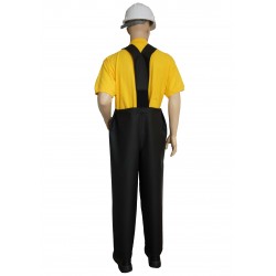 Spodnie z bawetem przednim oraz regulowanymi szelkami z elastyczną, szeroką gumą z tyłu. Szelki zapinane na klamerki tworzywowe. Posiadają regulację pasa. Spodnie zaopatrzone w bardzo wytrzymałe szwy.